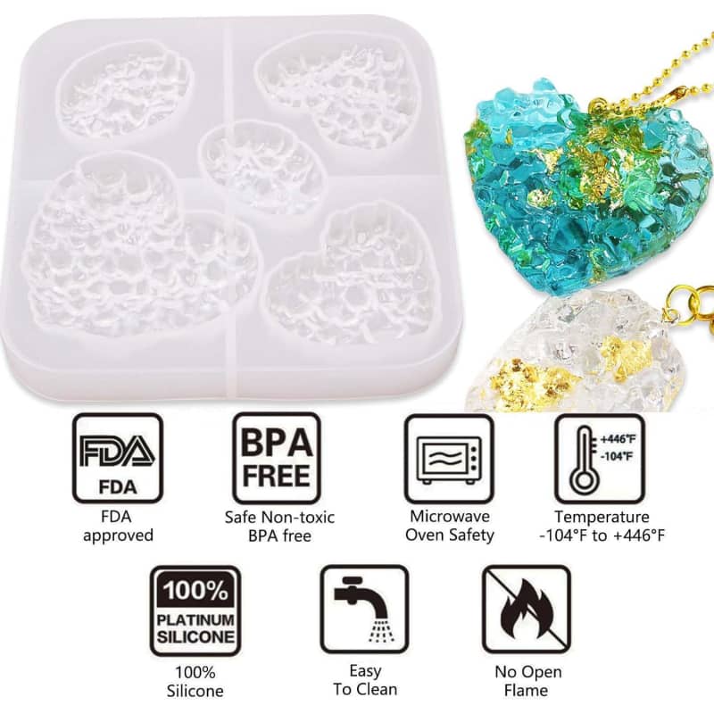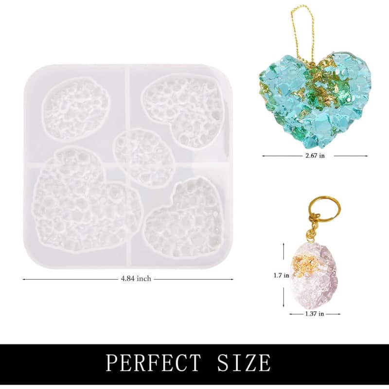Crystal Stones Pendant Resin Molds, 5-Cavity Necklace Jewelry Silicone Molds for Epoxy Resin, DIY Casting Craft Mold for Keychain Jewelry Making